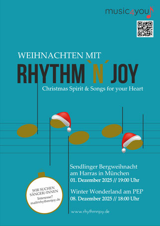 Weihnachtsingen mit dem RHYTHM´N´JOY Chor am 09.Dezember in München-Am Harras. Wir freuen uns mit Euch gemeinsam in der Adventszeit zu singen.